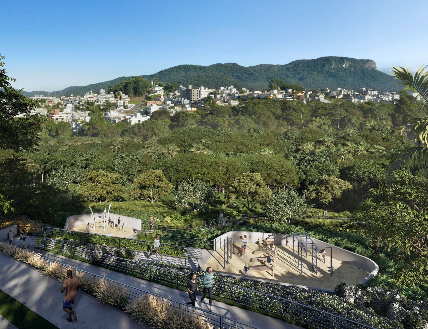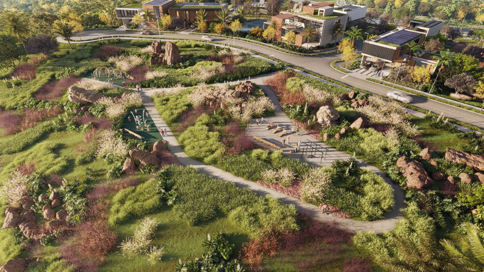 Este é o Altos da Pedra. Aqui, cada rua, praça e trilha têm linhas e formas inspiradas pelo traçado de nossos rios, vales e serras. O projeto do bairro segue os princípios do novo urbanismo, promovendo a convivência comunitária, a mobilidade e a acessibilidade, mantendo um forte compromisso com a sustentabilidade.